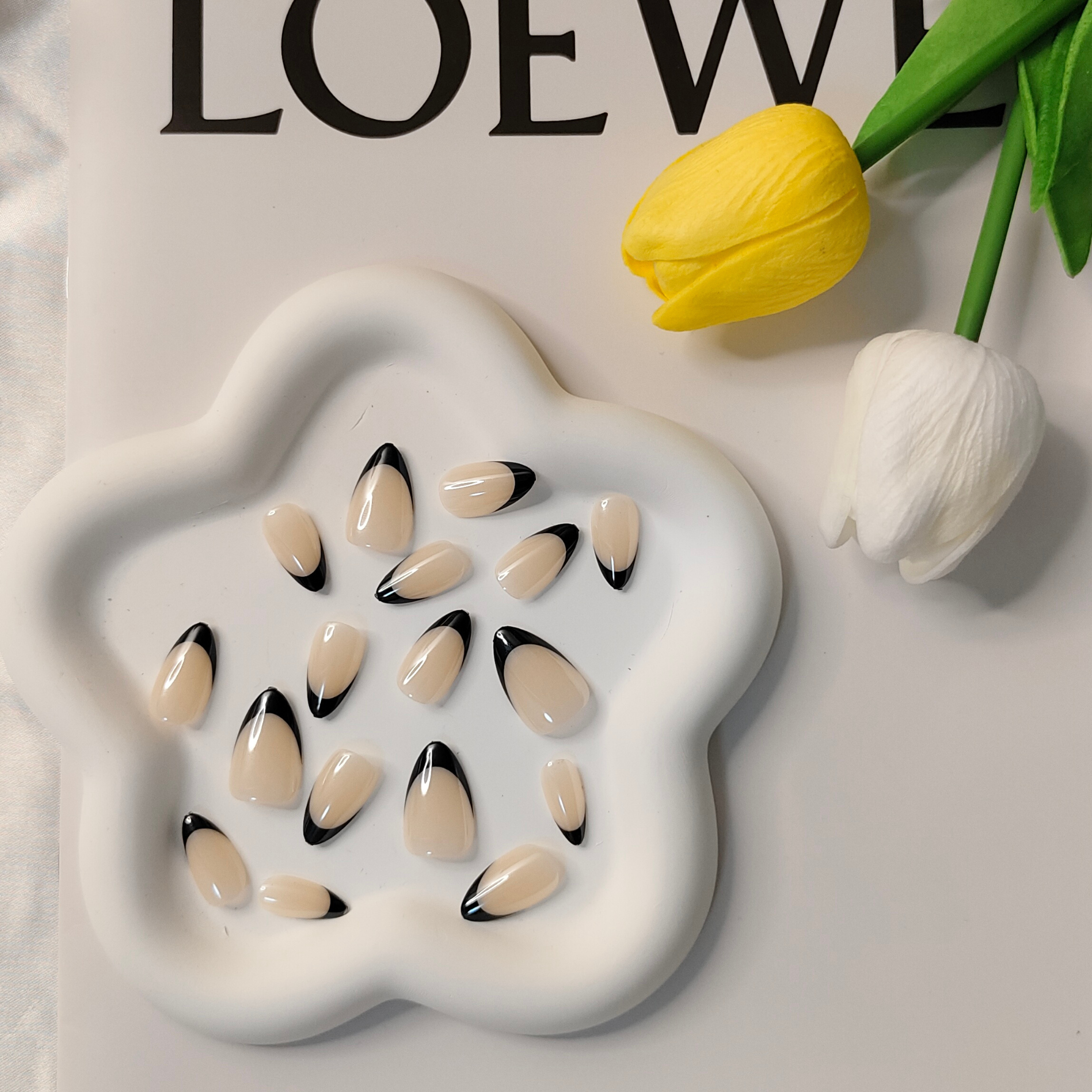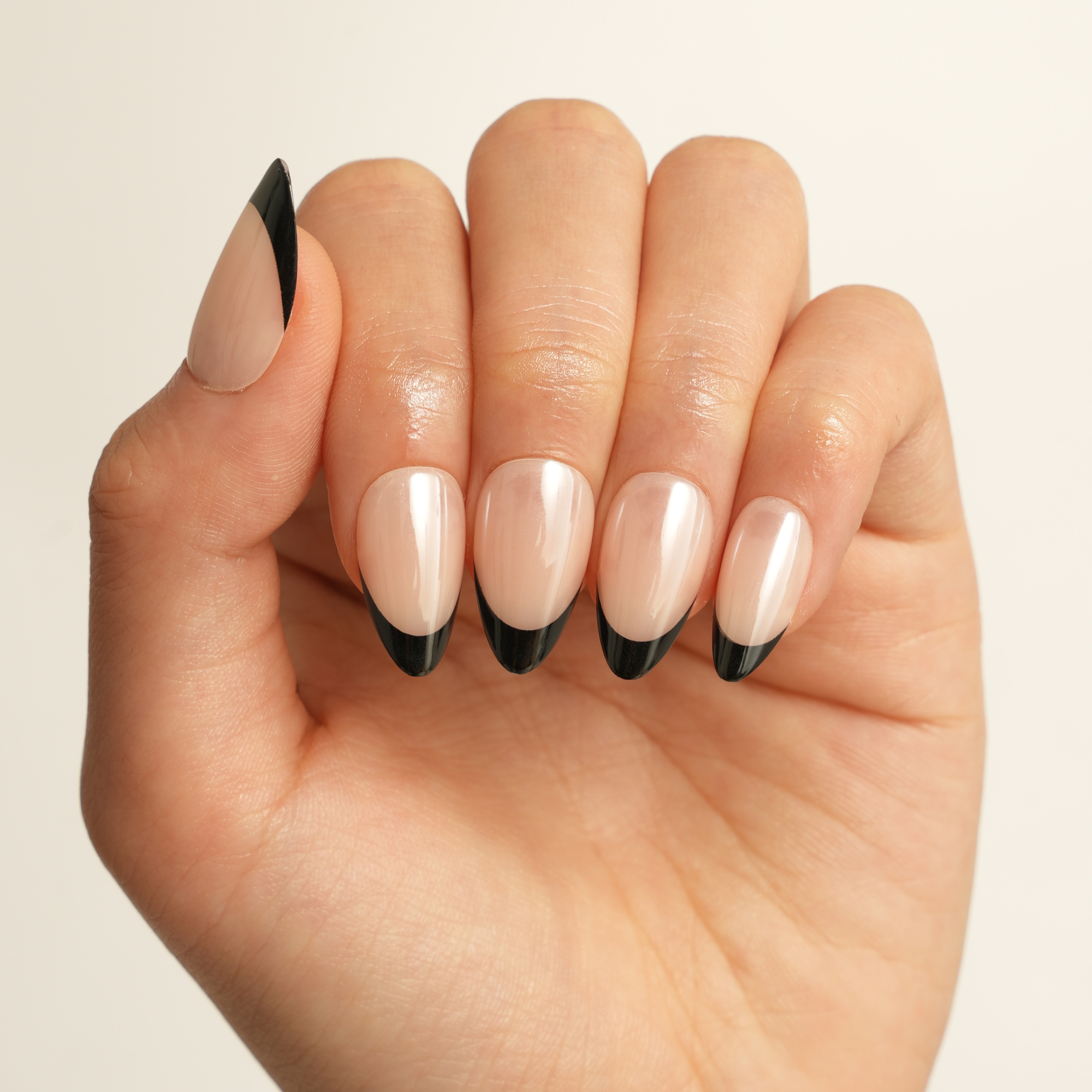 L'audace rencontre le chic avec ces ongles français à pointe noire ! 🖤✨ Élégants, stylés et parfaits pour toutes les occasions. Rehaussez votre look avec ce design subtil mais frappant ! 💅