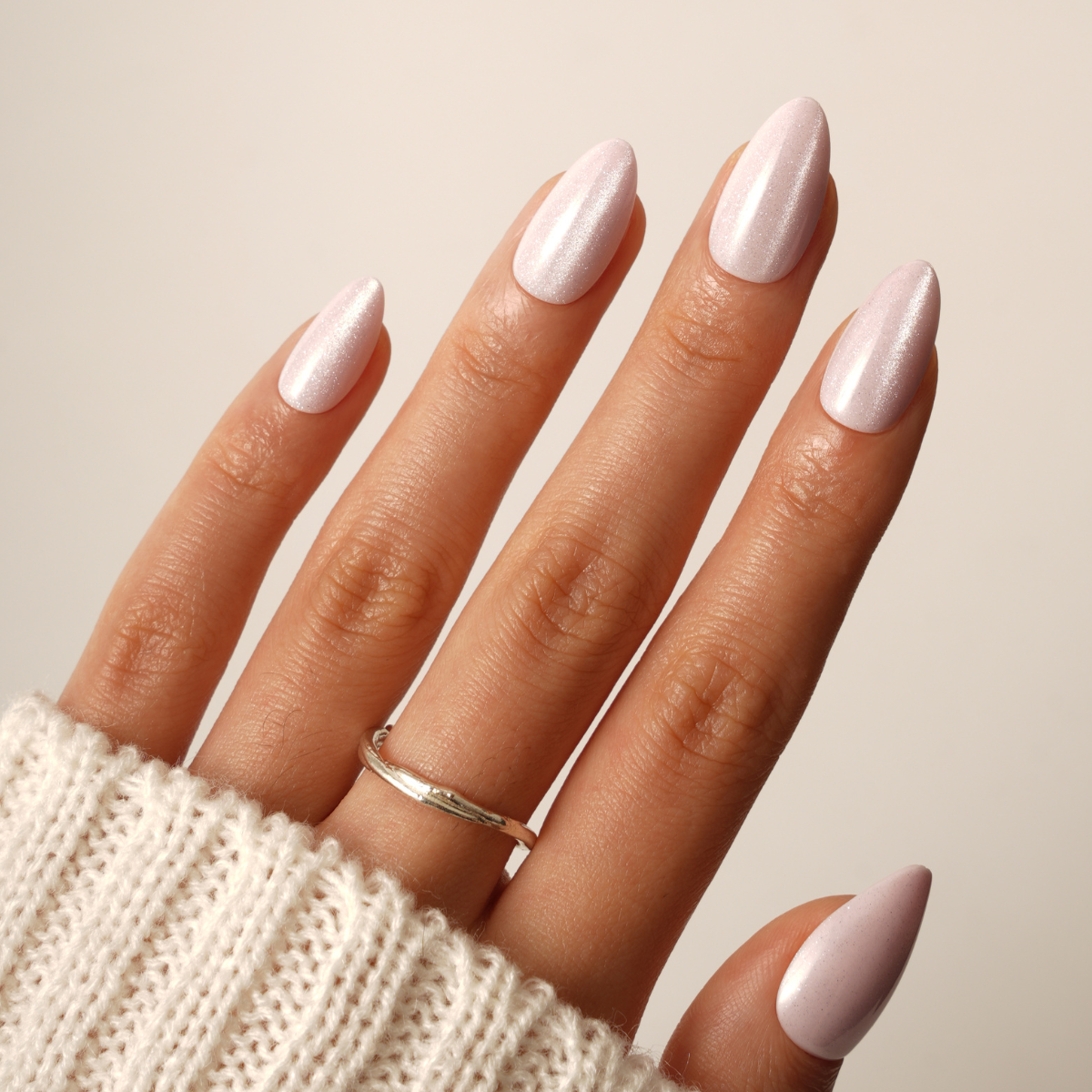Découvrez « Pink Cat Eye » ❄️ Ces ongles en forme d'amande scintillent d'une douce finition blanche nacrée, accentuée d'un éclat givré subtil. Le design est simple mais élégant, et le look offre une beauté fraîche et raffinée, alliant tranquillité et touche de glamour ✨