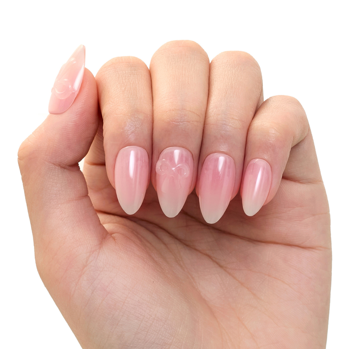 Featuring a soft pink-to-white ombré fade and a subtle 3D bow accent, this style strikes the perfect balance between cute and classy. The glossy finish enhances its dreamy aesthetic, making it the ideal choice for brunch dates, bridal vibes, or everyday elegance. 💗 Whether you’re channeling your inner sweetheart or just want something effortlessly pretty, this set is a must-have!