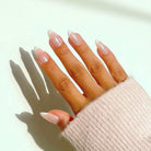 - Appuyez sur l'ongle à pression sur la partie collante, en commençant par la cuticule et en allant vers la pointe.