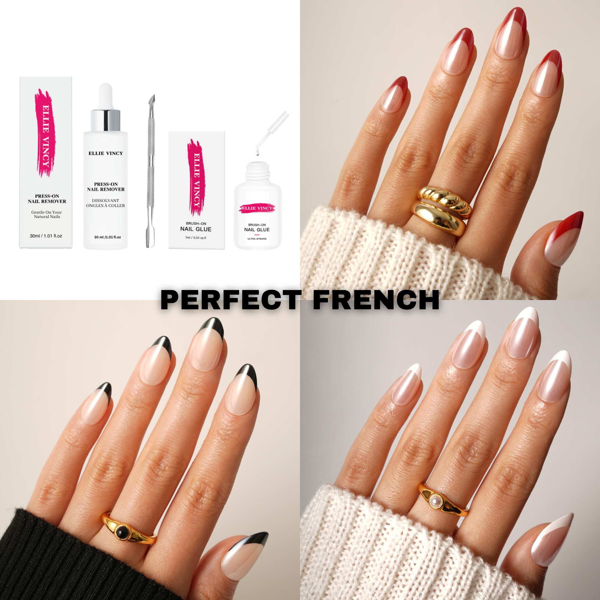 Ce combo français 6 en 1 amélioré comprend trois styles à pression intemporels — des pointes blanches élégantes 🤍 aux vagues rouges audacieuses ❤️ et aux contours noirs audacieux 🖤 — parfait pour n'importe quelle ambiance, que vous soyez au bureau ou en ville.