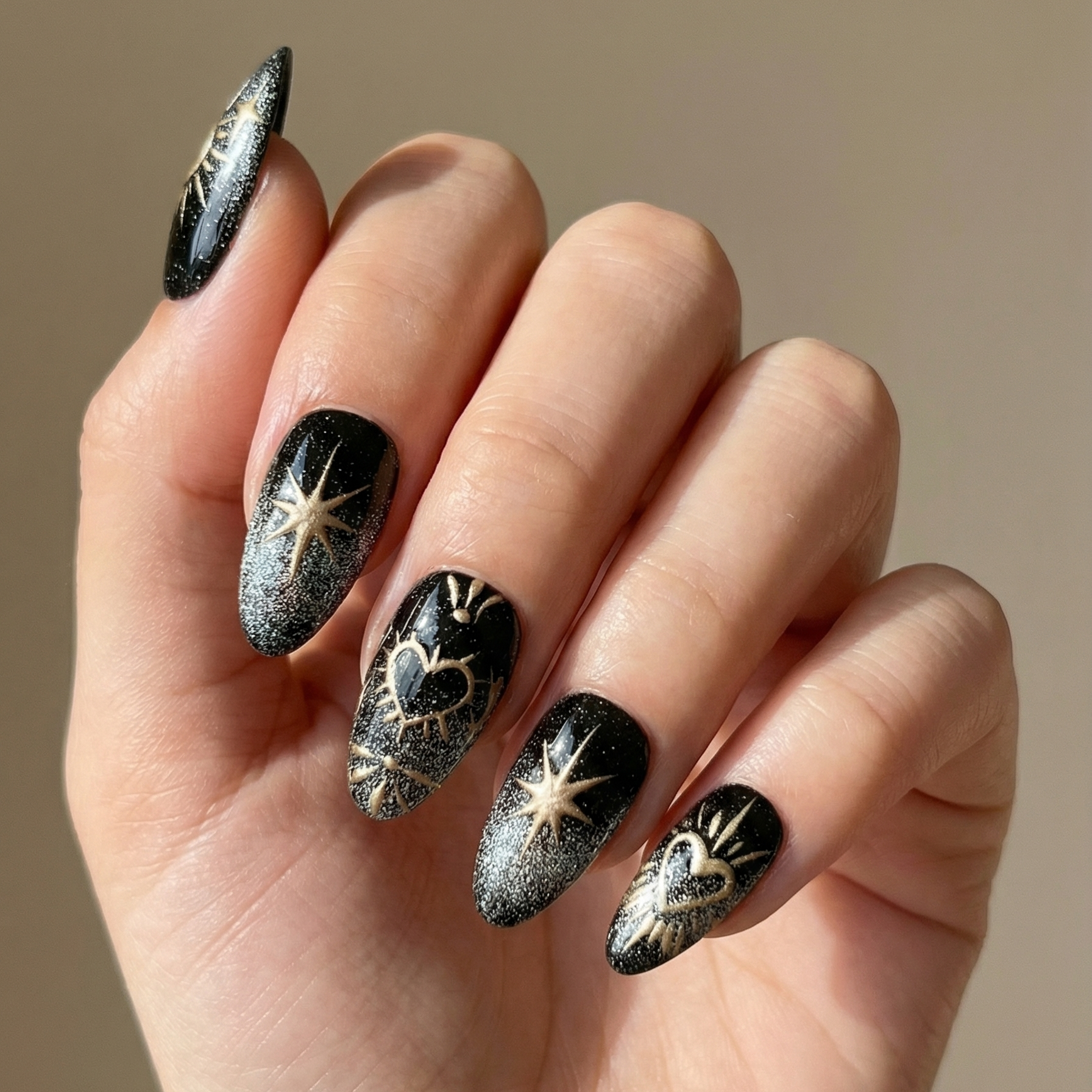Mandelschwarze Galaxie | Handgemachte Nägel