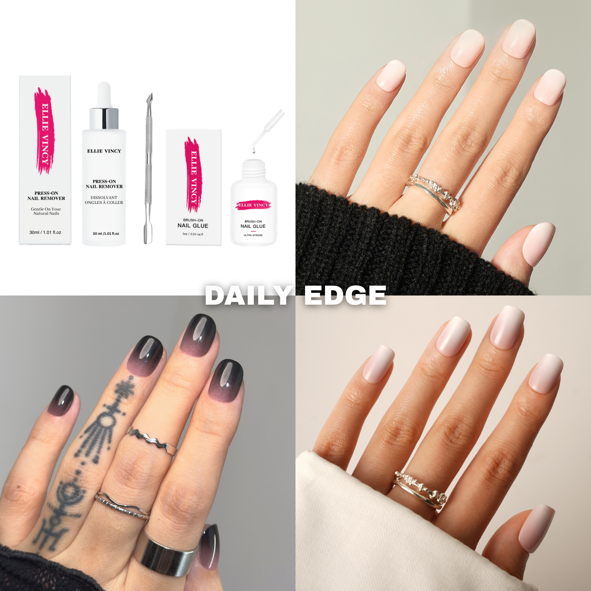 Schlichtheit trifft auf Stil – Daily Edge bietet Ihnen tragbare Nägel für jeden Tag mit einem Hauch von mutigem Flair. Diese vielseitigen Designs passen perfekt zu Ihrem Alltagsstil, und der mitgelieferte starke Kleber ermöglicht eine schnelle und sichere Anwendung für ein selbstbewusstes Gefühl den ganzen Tag lang.