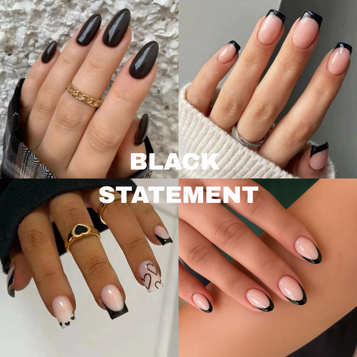 Von lässiger Streetwear bis hin zu gehobenen Abendlooks – mit Black Statement sprechen Ihre Nägel Stil, ohne ein Wort zu sagen.