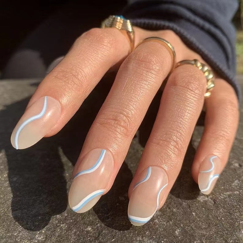 Keep it simple and chic with these delicate wavy line nails! 🤍✨ Featuring a soft nude base accented by thin white wavy lines, this design is all about understated elegance. The subtle curves create a graceful, artistic effect, while the almond shape adds a feminine touch. Perfect for those who appreciate minimalist beauty with a hint of creativity, these nails are ideal for everyday wear or special occasions.