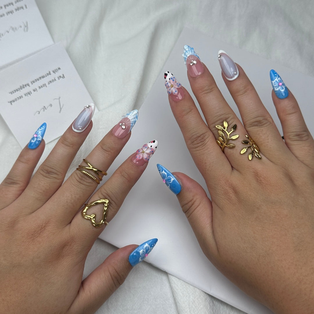 NOTE: PLEASE MEASURE YOUR NAIL SIZES BEFORE ORDERING. We don't offer a refund or return if you choose the wrong size.