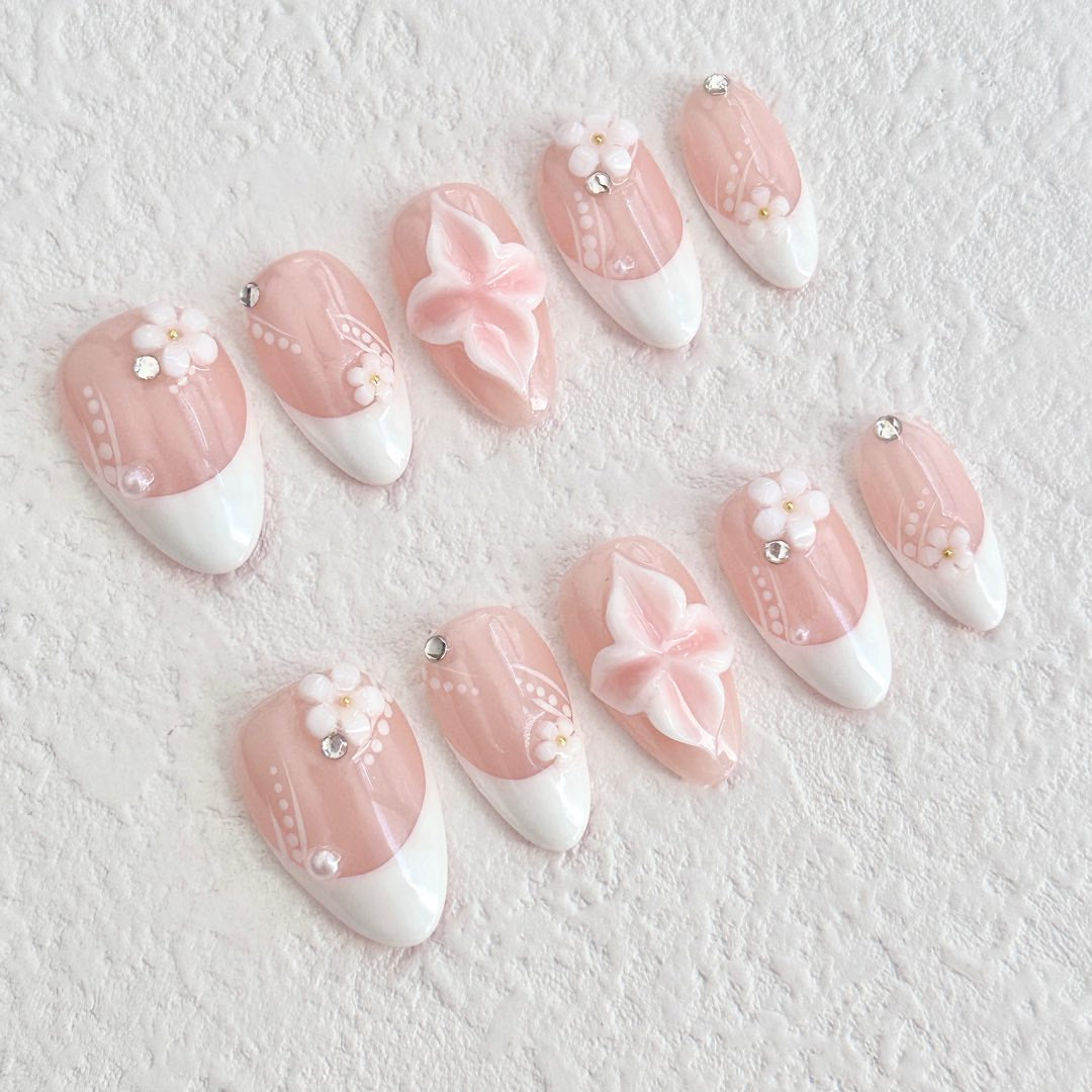 Each set has 10 pcs of Press-on nails and a Free application kit(Nail glue, Sticky tab, Nail file, and cuticle pusher). Within minutes- you'll have nails fit for a Queen!