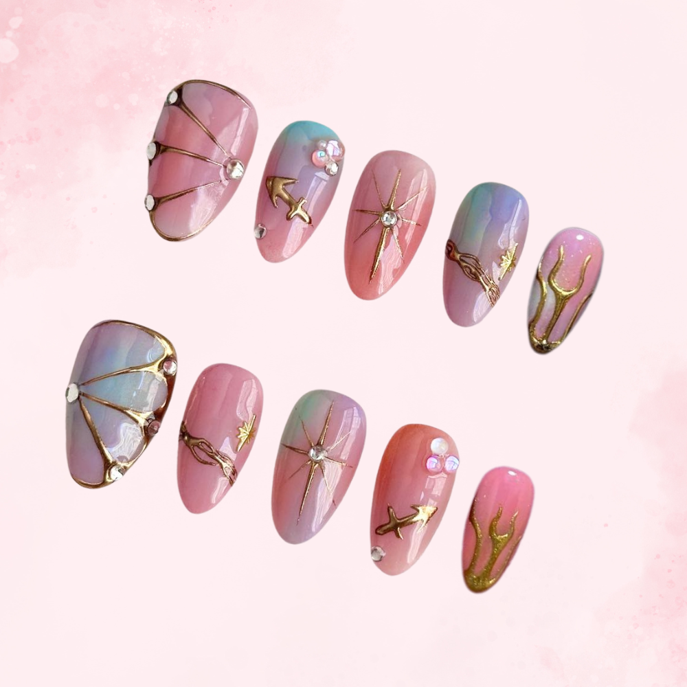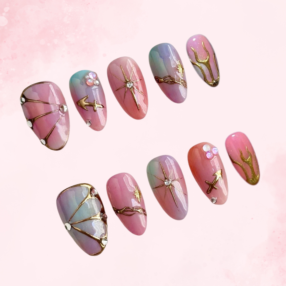Each set has 10 pcs of Press-on nails and a Free application kit(Nail glue, Sticky tab, Nail file, and cuticle pusher). Within minutes- you'll have nails fit for a Queen!