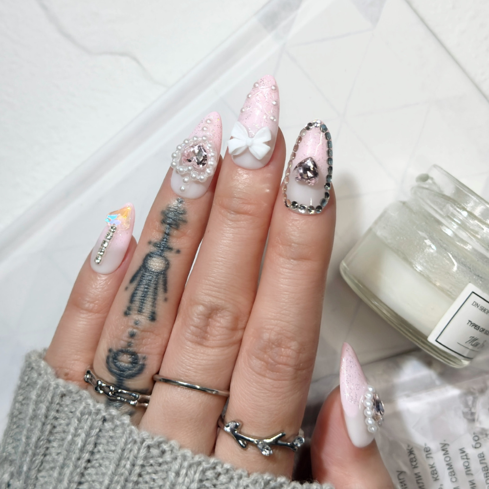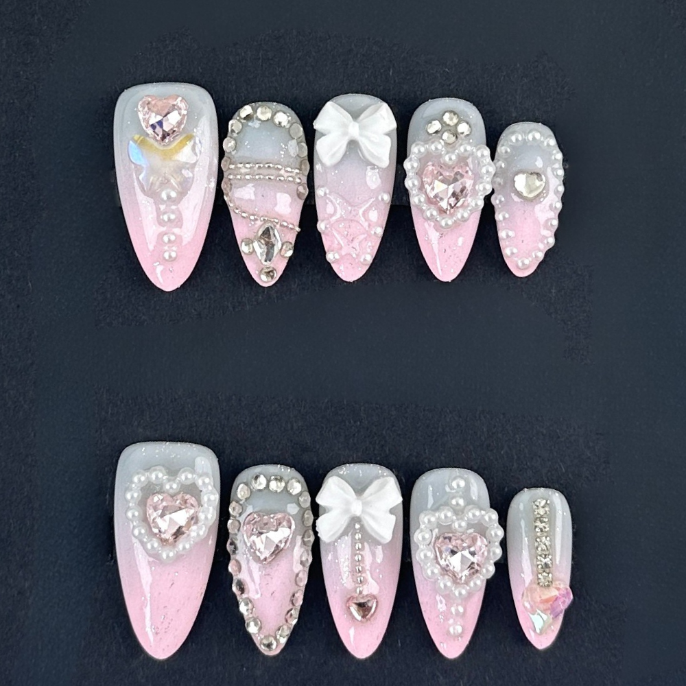 Each set has 10 pcs of Press-on nails and a Free application kit(Nail glue, Sticky tab, Nail file, and cuticle pusher). Within minutes- you'll have nails fit for a Queen!