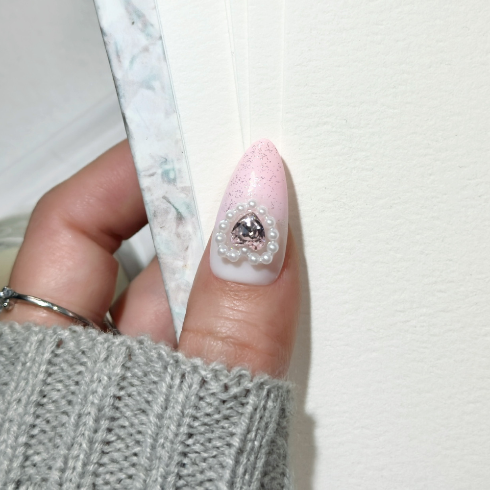 - Press the Press-on Nail onto the sticky tad, starting from the cuticle and working towards the tip.