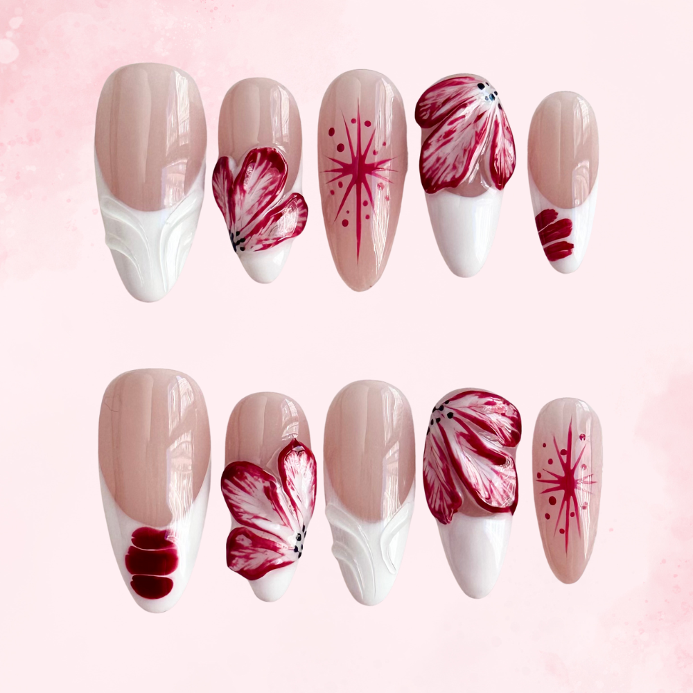 Each set has 10 pcs of Press-on nails and a Free application kit(Nail glue, Sticky tab, Nail file, and cuticle pusher). Within minutes- you'll have nails fit for a Queen!