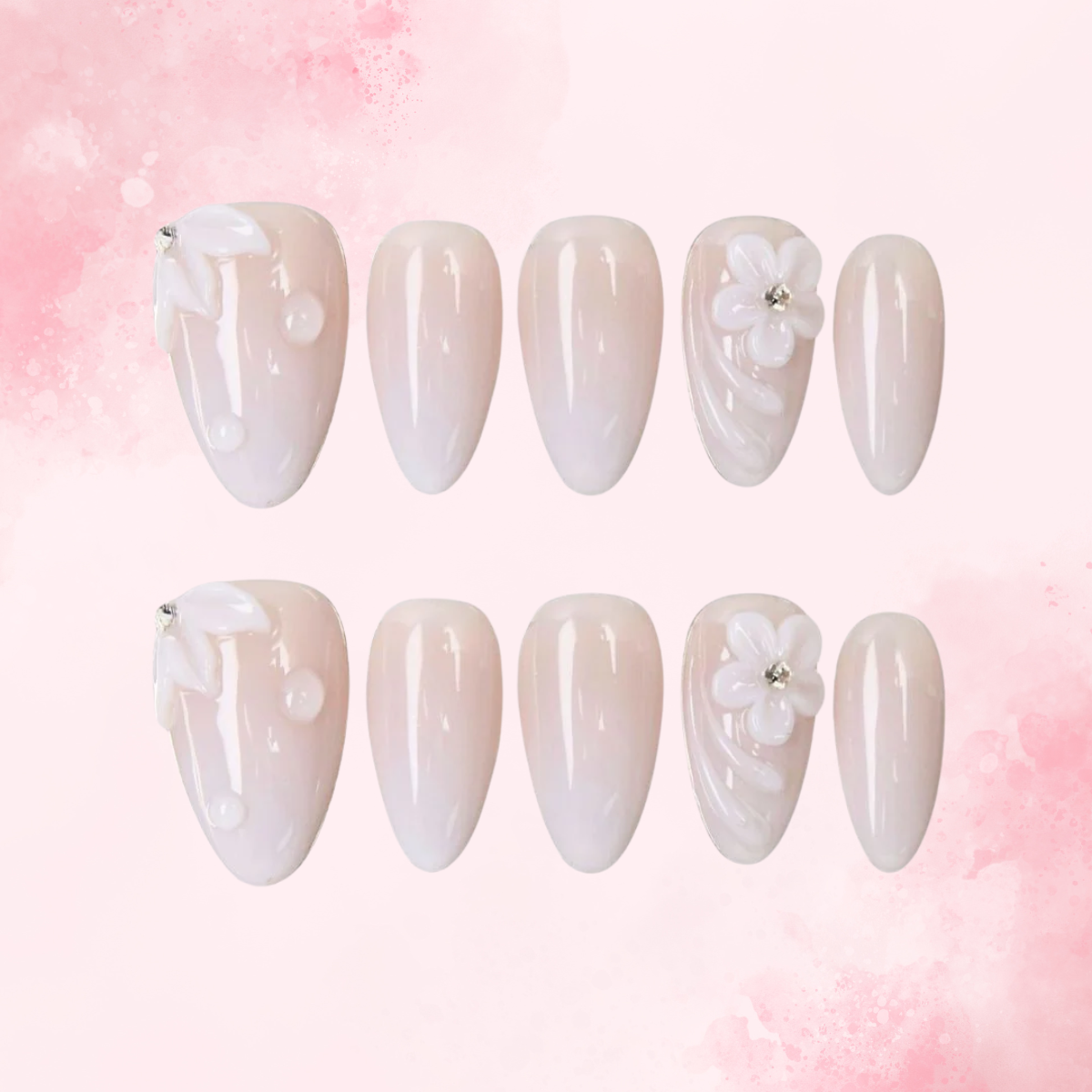 Each set has 10 pcs of Press-on nails and a Free application kit(Nail glue, Sticky tab, Nail file, and cuticle pusher). Within minutes- you'll have nails fit for a Queen!