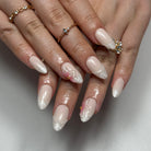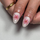 - Press the Press-on Nail onto the sticky tad, starting from the cuticle and working towards the tip.