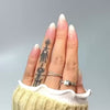 5. Attach Press-On Nail: Press the press-on nail onto the sticky pad, starting from the cuticle and moving towards the tip for a secure fit. 💖👑