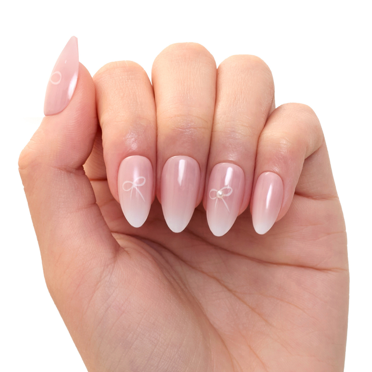 Sweeten up your fingertips with our Sugar Bow press-on nails. Featuring a soft pink-to-white ombré base and delicate bow accents, this design is all about charm and grace. Whether you’re headed to a brunch or a bridal shower, these nails add the perfect sprinkle of femininity to any look. 💖🎀
