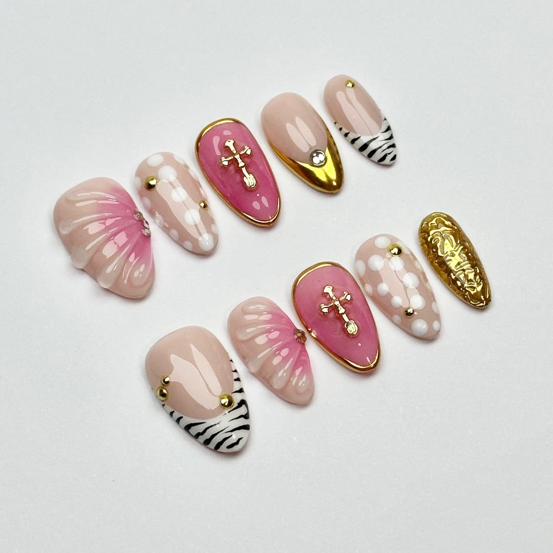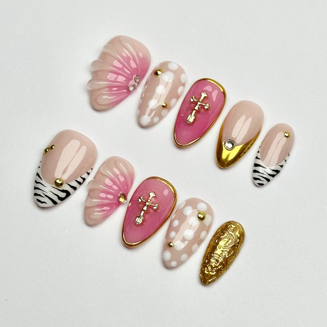 Zebra Pink Shine | Handmade Nails