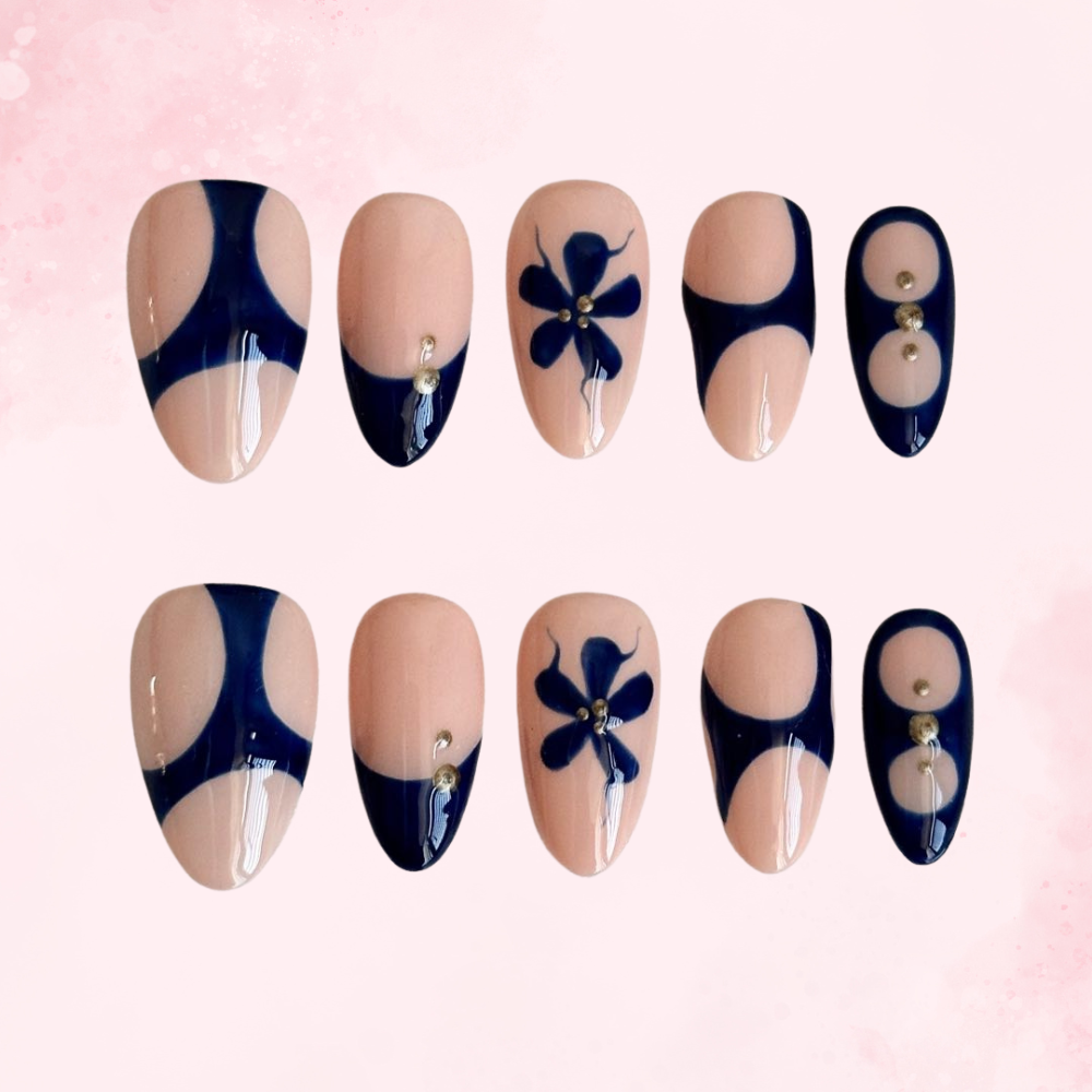 Each set has 10 pcs of Press-on nails and a Free application kit(Nail glue, Sticky tab, Nail file, and cuticle pusher). Within minutes- you'll have nails fit for a Queen!