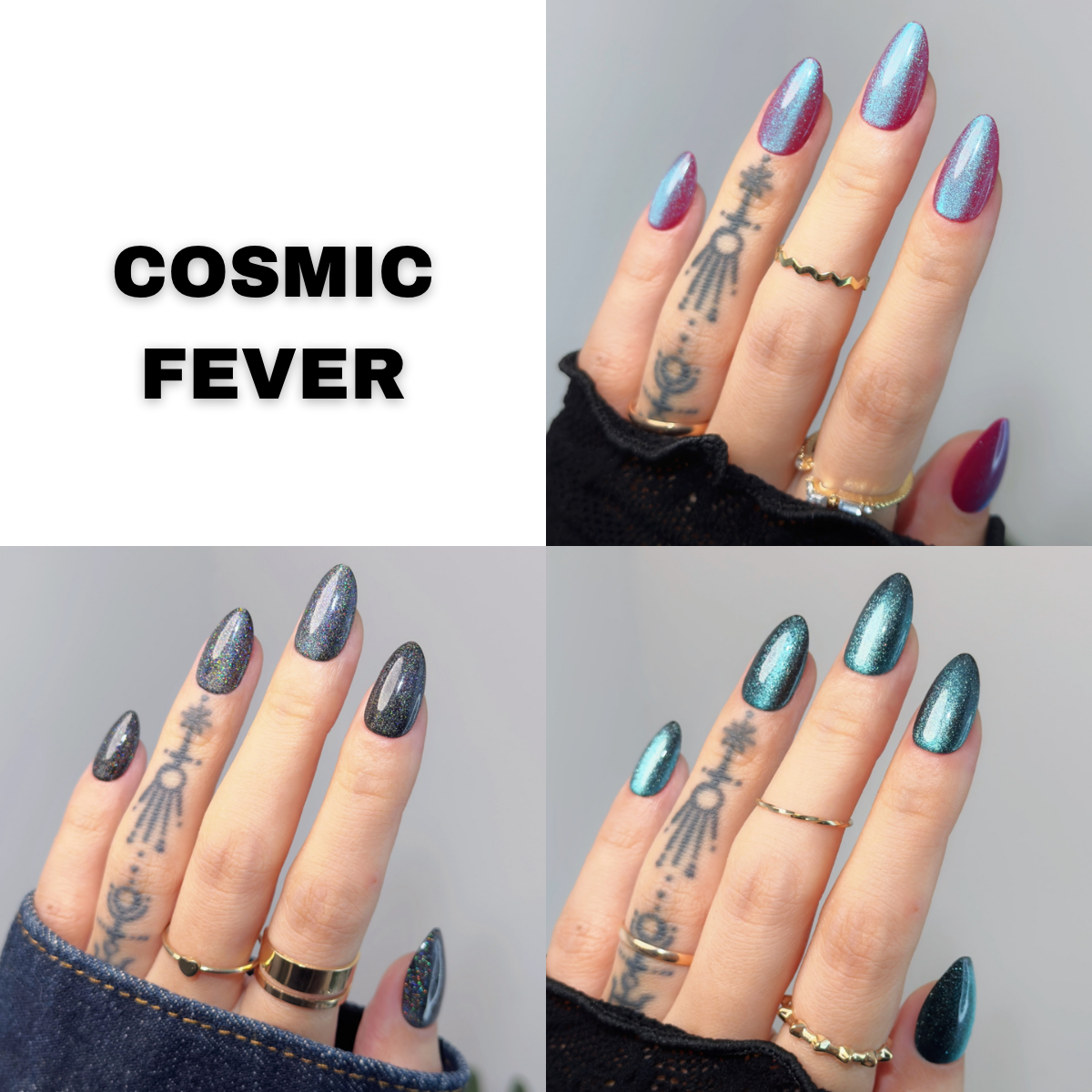 Cosmic Fever — a bold collision of galaxy hues and high-shine chrome.