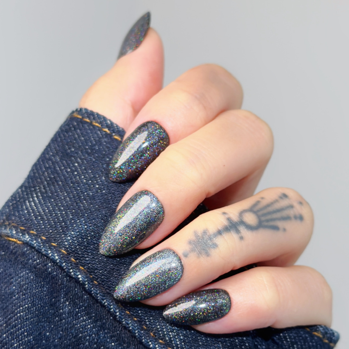 • 🌌 Nebula Spark: Multicolor shimmer on deep black — like stardust in motion.