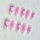 Each set has 10 pcs of Press-on nails and a Free application kit(Nail glue, Sticky tab, Nail file, and cuticle pusher). Within minutes- you'll have nails fit for a Queen!