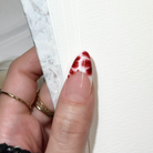 - Press the Press-on Nail onto the sticky tad, starting from the cuticle and working towards the tip.