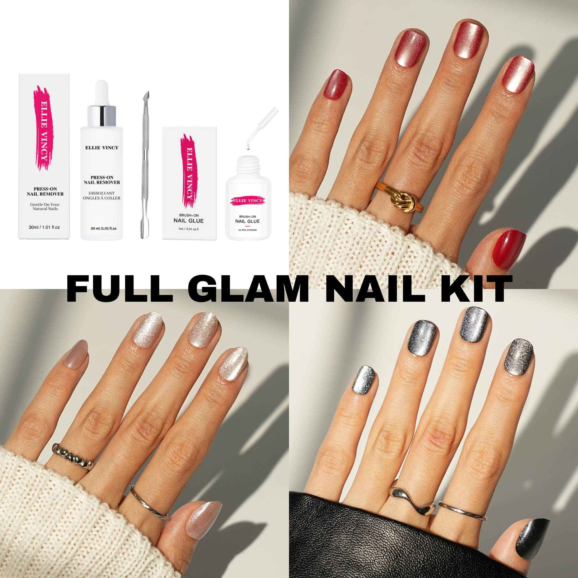 Des brunchs aux soirées, le kit Full Glam Nail garantit que vos ongles brillent aussi fort que vous, sans avoir besoin de passer par un salon.